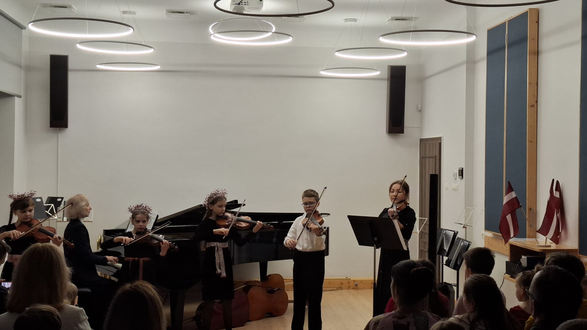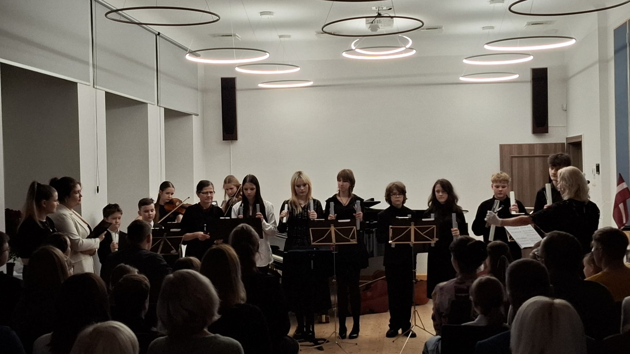 Valsts svētku pasākums “Ko es protu Latvijai?” 12. novembrī AKCMV Mazajā skolā izskanēja svinīgi un sirsnīgi. Dāvanā Latvijas Dzimšanas dienas svētkos skolas audzēkņi (un ne tikai!) bija sagatavojuši krāsainas kompozīcijas – gan pašu komponētas un iestudētas, gan dažādu komponistu skaņdarbus un, protams, skaistās latviešu tautasdziesmas. Prieks par ģimeniski sagatavotajiem priekšnesumiem! Paldies, ka savai Latvijai protam tik daudz!