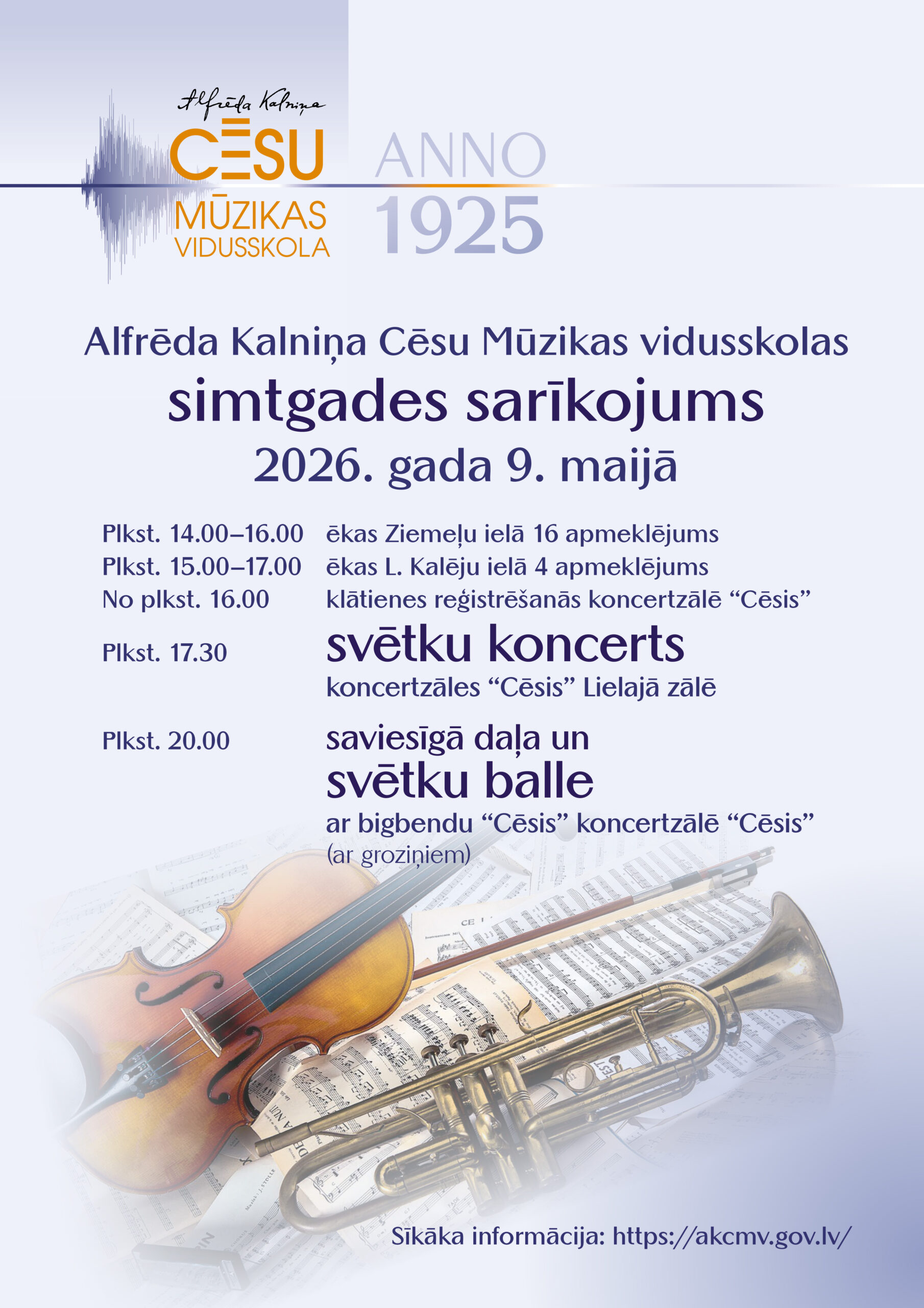 Plkst. 20.00 saviesīgā daļa un svētku balle Koncertzālē “Cēsis” ar Bigbendu “Cēsis” (ar groziņiem)