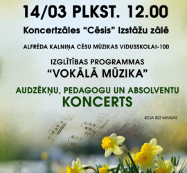 Mūzika ir Tavs ceļš? Turpini to Cēsīs! Ja Tev patīk muzicēt, dziedāt, radīt un būt vidē, kur mūzika ir ikdiena, Alfrēda Kalniņa Cēsu Mūzikas vidusskola aicina pieteikties 2026./2027. mācību gada 1. kursam pēc pamatizglītības ieguves. Šeit Tu ne tikai pilnveidosi savas muzikālās prasmes, bet arī mācīsies iedvesmojošā vidē, satiksi domubiedrus […]