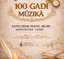 23. janvārī plkst. 18.00 Koncertzāles “Cēsis” Lielajā zālē notiks ikgadējais Alfrēda Kalniņa Cēsu Mūzikas vidusskolas Pateicības dienas sarīkojums “100 gadi mūzikā”. Pasākums iezīmē nozīmīgu kultūrvēsturisku notikumu – simts gadus, kopš Cēsu Mūzikas vidusskola ir bijusi neatņemama Latvijas profesionālās mūzikas izglītības un kultūras dzīves sastāvdaļa. Vakars iecerēts kā pateicības apliecinājums mūzikai, […]